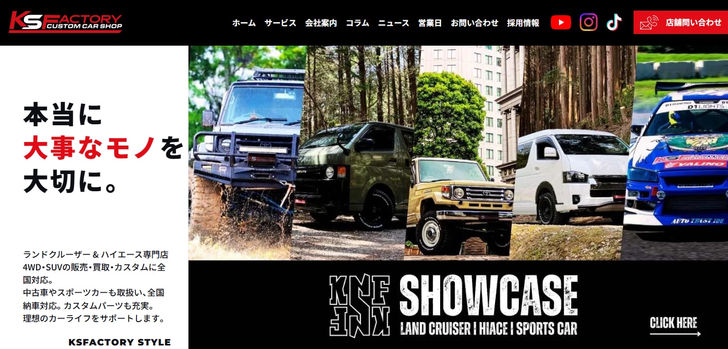 ランドクルーザー&ハイエース専門店として、4WD・SUVの販売・買取・カスタムに全国対応してきたKSFACTORYが、ついにオリジナルパーツのオンラインストアを開設しました。 「理想のカーライフを、もっと自由に、もっと楽しく。」そんな想いから、スタッフ一同で選び抜いたオリジナルパーツや厳選アイテムを取り揃えています。今後もお客様の声をもとにラインナップを充実させてまいります。ぜひ一度ご覧くださいませ!